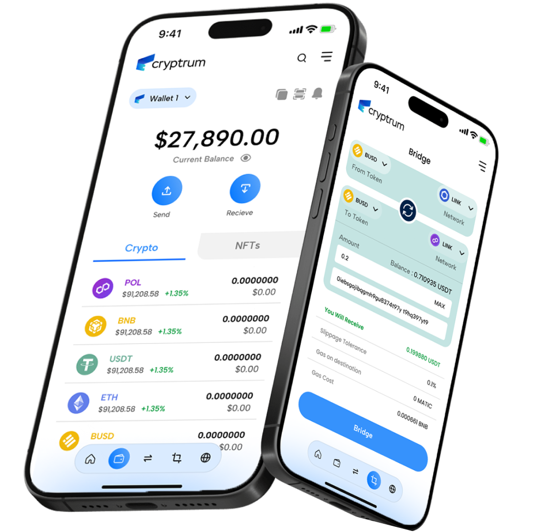 ITSpectrum Solutions offers customised and decentralised blockchain wallet development services that meet your unique requirements. For instance, Cryptrum develops decentralised Web3 wallets tailored for blockchain initiatives and digital investment platforms. We empower businesses to deploy non-custodial wallets that offer users complete asset control. With features like advanced encryption and scalable architecture, Cryptrum improves dApp integration, enhances transaction speed, and ensures a secure, seamless user experience.